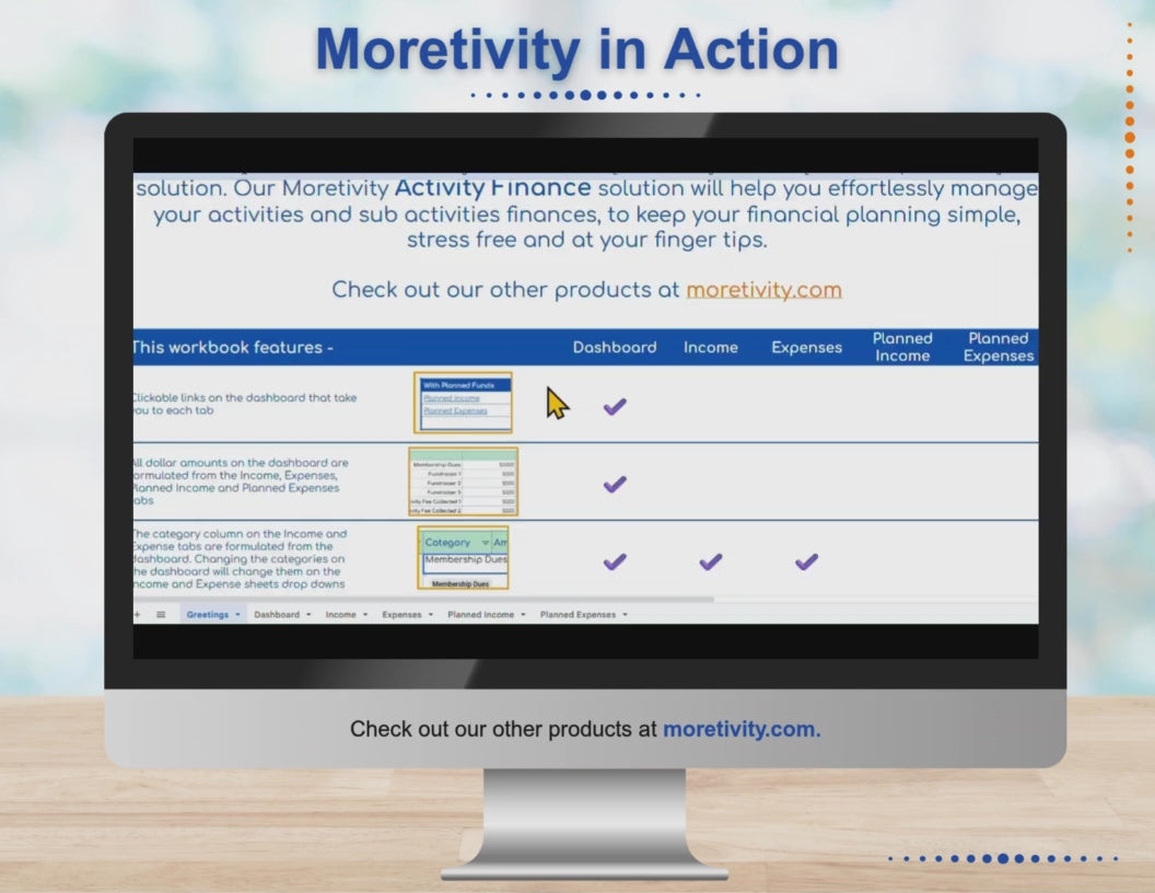 Greetings and Salutations! Welcome to Moretivity, your premier activity planning solution. Our Moretivity Activity Finance solution will help you effortlessly manage your activities and sub activities finances, to keep your financial planning simple, stress free and at your finger tips.